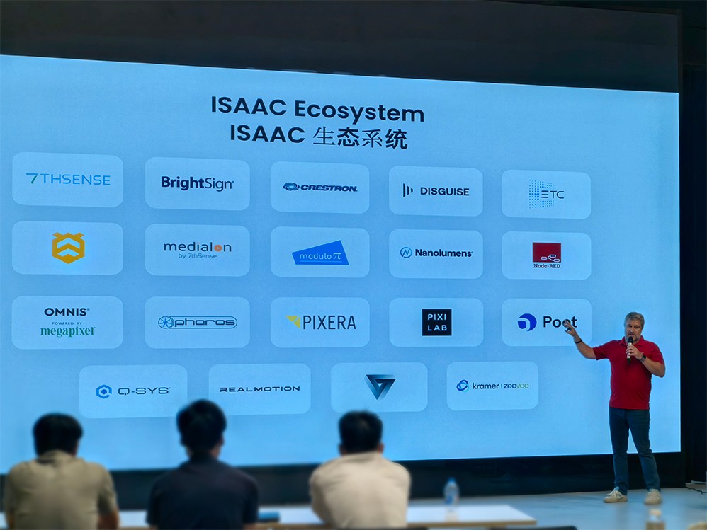 本次活动,佳联公司特别邀请Smart Monkeys Inc. 首席执行官Stephan Villet先生及技术专家Cole Cassidy先生出席,并为来宾介绍了ISAAC平台在全球文旅AV领域的领先地位及其应用成果。ISAAC平台凭借其系统统一管理、内容高效调度与智能运维等核心优势,已广泛服务于Sphere Las Vegas、Warner Bros. World Abu Dhabi等世界级沉浸项目,获得了行业高度认可。